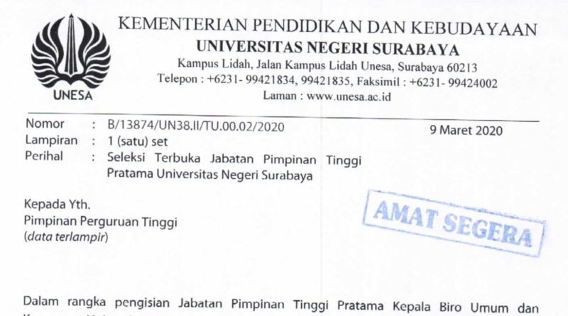 Dalam tangka pengisian Jabatan Pimpunan Tinggi Pratam Kepala Biro Perencanaan, pembelajaran dan Kemahasiswaan Universita Bengkulu Kementerian pendidikan dan Kebudayaan, sesuai