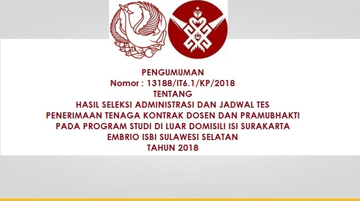 Pengumuman Hasil Seleksi Administrasi Tenaga Kontrak Dosen dan Pramubhakti ISBI Sulawesi Selatan Tahun 2018